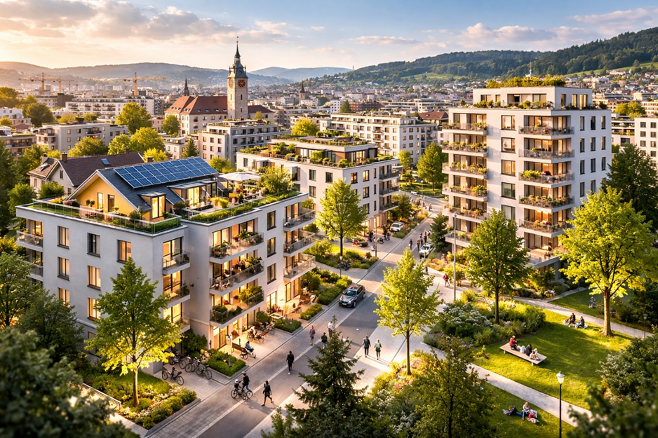Winterthur soll ausreichend Wohnraum für unterschiedliche Lebenssituationen bieten – für Familien, Einzelpersonen, ältere Menschen und den Mittelstand. Bestehende Gebäude werden effizient genutzt, Dachstöcke ausgebaut und an geeigneten Standorten höher gebaut. Die Stadt bleibt grün, lebenswert und wirtschaftlich stark, während der steigende Wohnraumbedarf gedeckt wird.